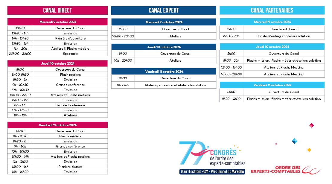 Canal Partenaires : entièrement dédié à l’offre des partenaires du Congrès : ateliers solutions, flashs mission, flashs meeting, place de marché …